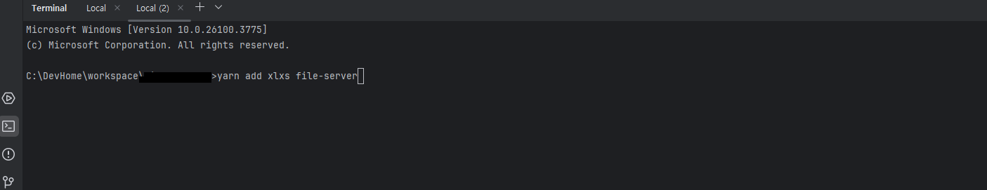 1. 우선 터미널을 연 이후 yarn add xlsx file-saver # 또는 npm install xlsx file-saver