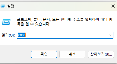 1. windows+ r -> cmd입력