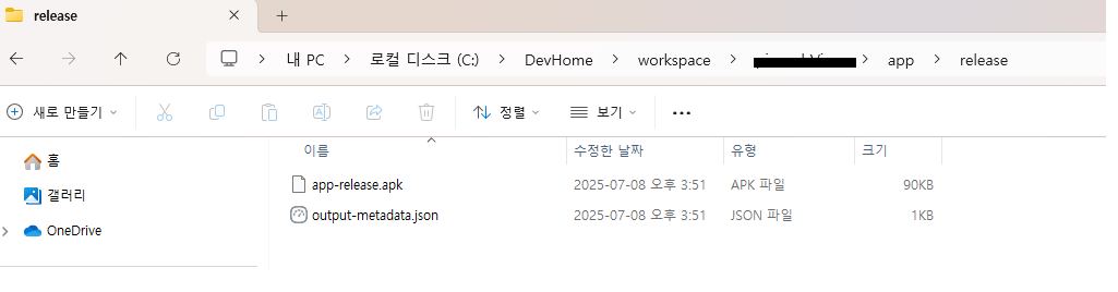 9. app\release 폴더에 들어가서 app-release.apk 파일이 정상적으로 설치되었는지 확인하자 .