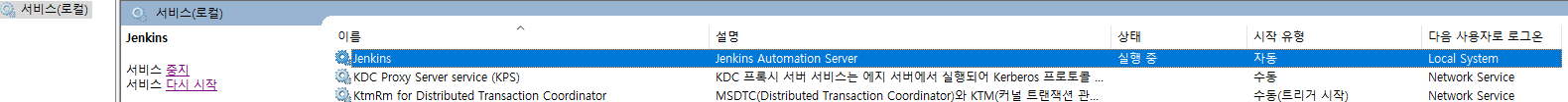5.서비스에서 Jenkins 및 Nginx에 서비스를 중지 -> 시작