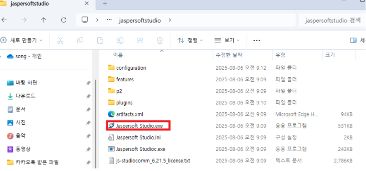 4. 압축 푼 이후 jaspersofrt Studio.exe 클릭 ( 회원가입시 만들었던 ID/PW 입력 창이 나오면 입력해준다.)