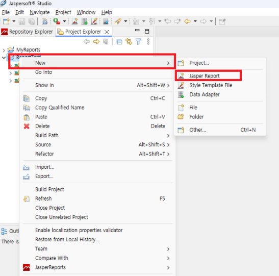 4.ReportTest 우클릭 -> New -> Jasper Report 클릭