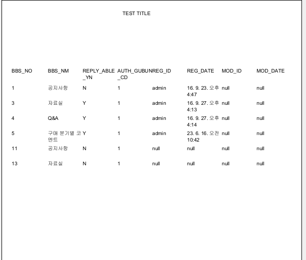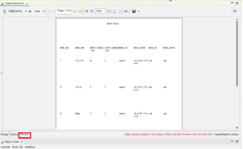 앞에서 연결했던 DB에 대해서 값이 정상적으로 jxrml로 호출이 되는지 알아보려고 한다 .