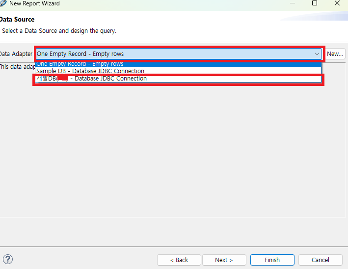 3.Data Adapter 클릭 후 연결할 DB 선택 ( 이전 페이지에서 볼 수 있다.)