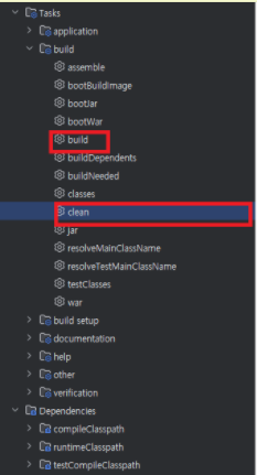 2. 이후 clean -> build 순서대로 클릭 . (gradle 환경설정이 되어있는 프로젝트라 가정)